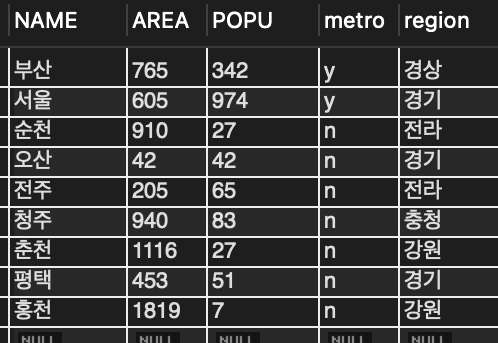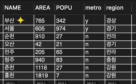 📌 도시명이 '부산'인 레코드를 삭제