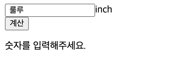 if (isNaN(inch)) { // 숫자가 아니라면 바로 리턴. isNaN()함수 : 숫자인지 확인. not a number