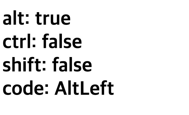 altKey, ctrlKey, shiftKey 속성은 해당 키를 눌렀는지 불 자료형이 들어 있음