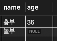 📌 나이를 생략한 놀부는 DBMS의 설정에 따라 입력될 수도 있고 아닐 수도 있다.