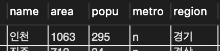 📌 인천시는 모든 필드의 값을 다 제공하여 광역시로 등록