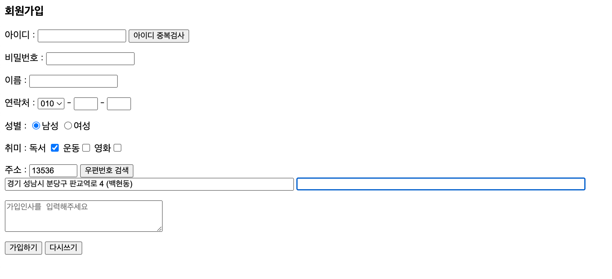 <input type="reset" value="다시쓰기"></p>