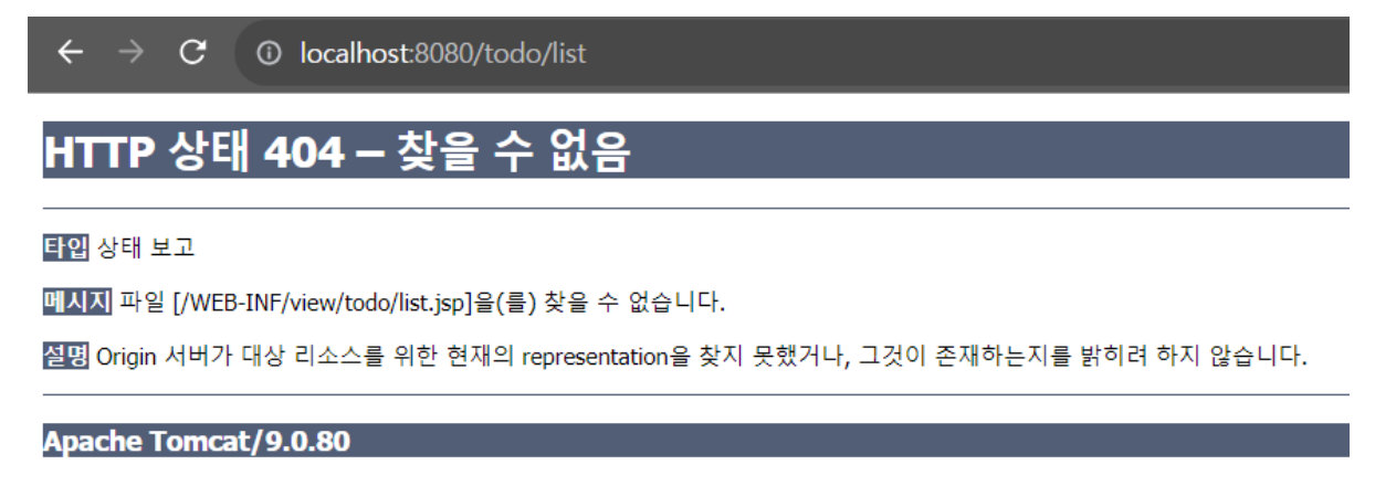 ⚡️ TodoController의 @RequestMapping의 value 값은 '/todo'이고 list()는 '/list'이므로 최종경로는 '/todo/list'