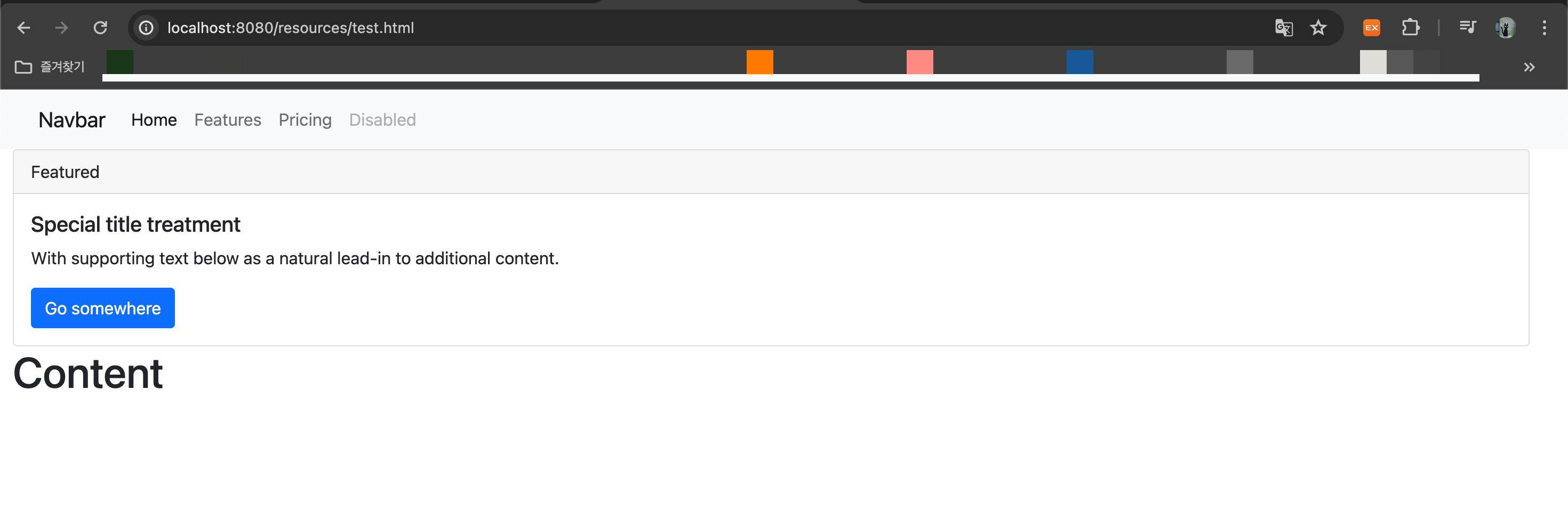 📌 webapp의 resources 폴더에 test.html을 작성해서 부트스트랩을 적용하는 페이지를 작성