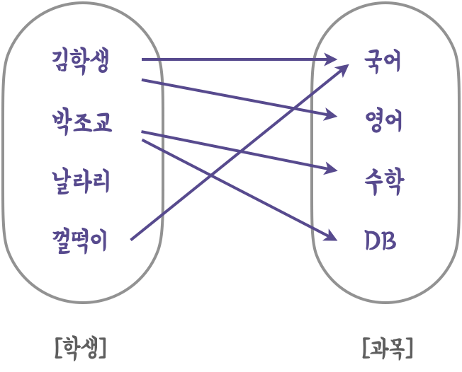 👩🏻🚀 다음 예는 학생과 과목간의 수강 관계를 표현한 것