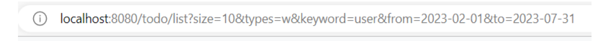 ✓ 브라우저의 주소창에는 모든 검색 조건이 GET 방식의 쿼리 스트링으로 만들어짐