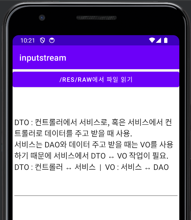 ✓ resources는 현재 패키지의 리소스를 반환. openRawResource()- /res/raw 파일을 읽기용으로 열기.