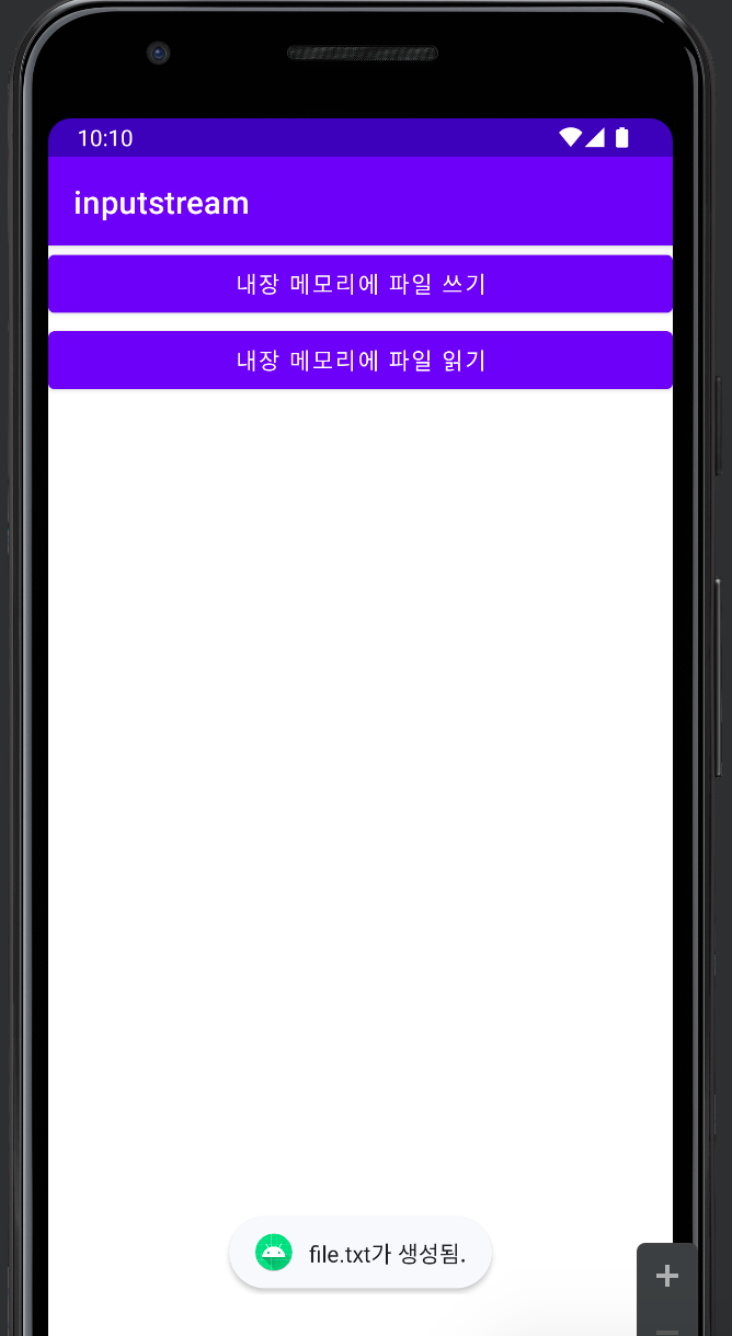 Toast.makeText(applicationContext, "file.txt가 생성됨.", Toast.LENGTH_SHORT).show()