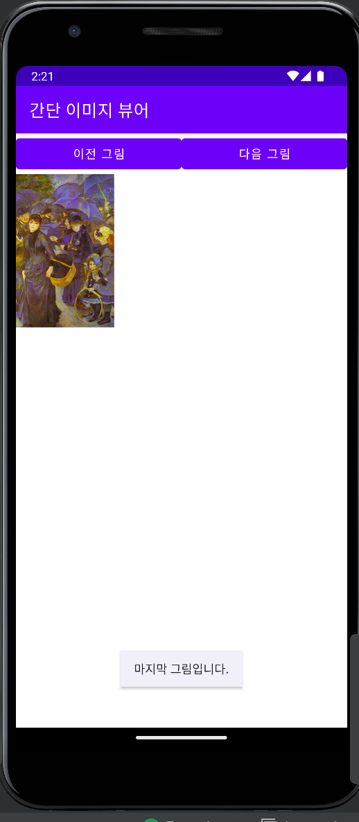 Toast.makeText(applicationContext, "마지막 그림입니다.", Toast.LENGTH_SHORT).show()