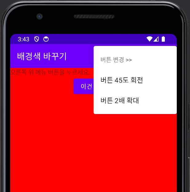 subMenu?.add(0, 4, 0, "버튼 45도 회전")