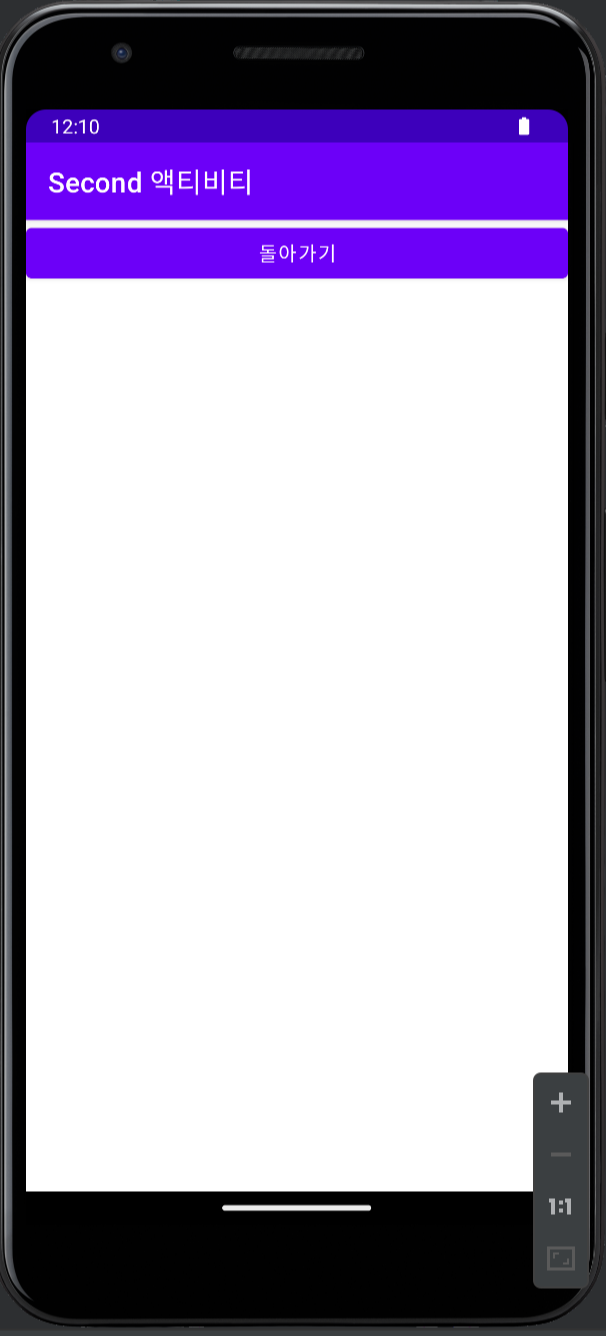 값을 돌려받기 위해 startActivityForResult()를 사용. 두 번째 파라미터에는 돌려받을 값이 있는 경우에 0이상을 사용.