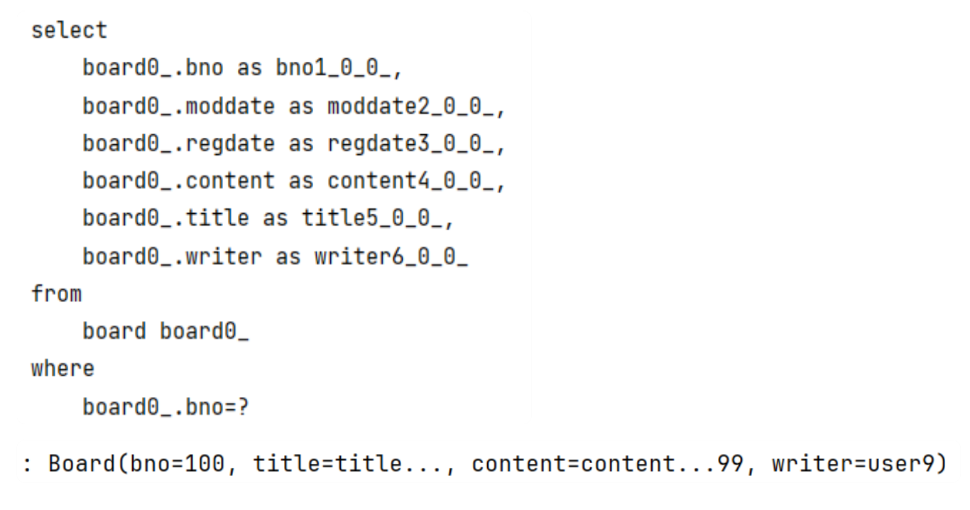 Long bno = 100L; // 조회하고자 하는 bno 번호