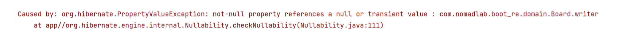 ✓ 일반적으로 엔티티 객체(Board 클래스)는 가능하면 최소한의 변경이나 변경이 없는 immutable로 설계하는 것이 좋지만, 강제적인 사항은 아니므로 Board 클래스에 수정이 가능한 부분을 미리 메서드로 설계