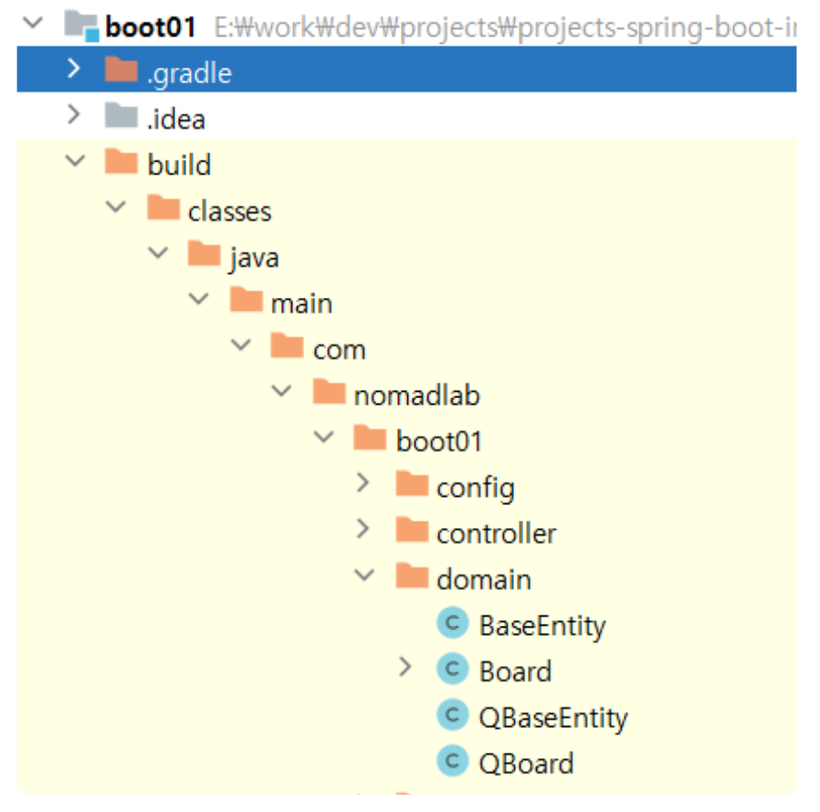 ➡️ Q도메인이라는 존재가 필요한데 Q도메인은 Querydsl의 설정을 통해서 기존의 엔티티 클래스를 Querydsl에서 사용하기 위해서 별도의 코드로 생성하는 클래스