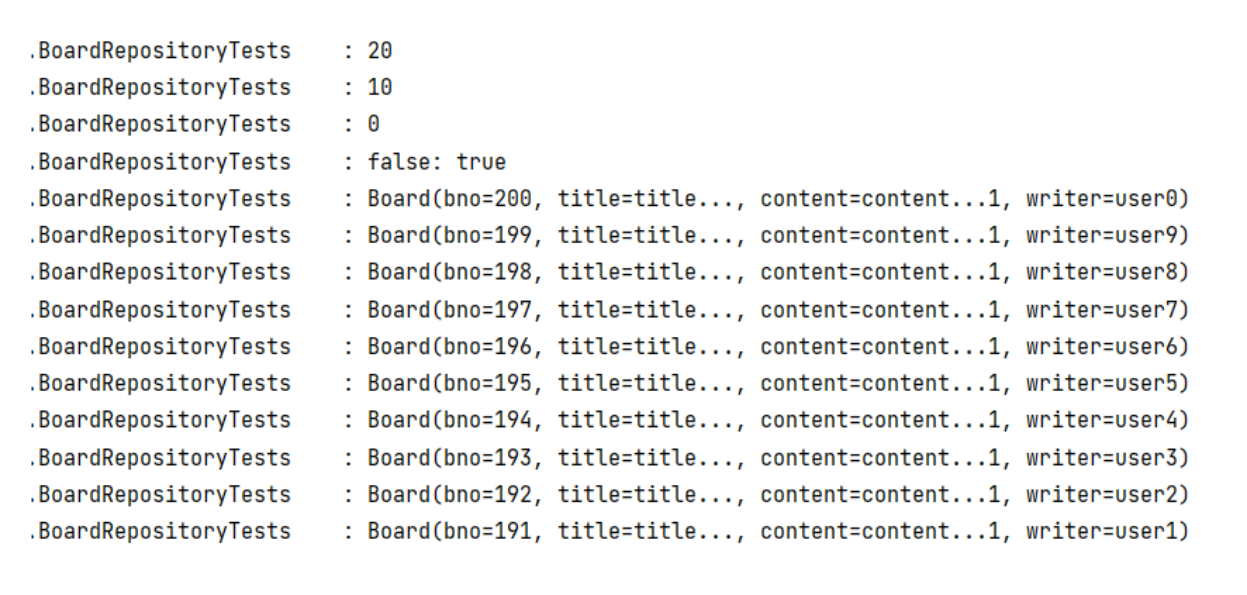 BoardRepositoryTests 테스트 코드에서는 페이지 관련된 정보를 추출