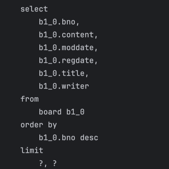 ✓ applyPagination()이 적용된 후에 실행되는 쿼리의 마지막에는 페이징 처리에 사용하는 limit 가 적용되는 것 확인