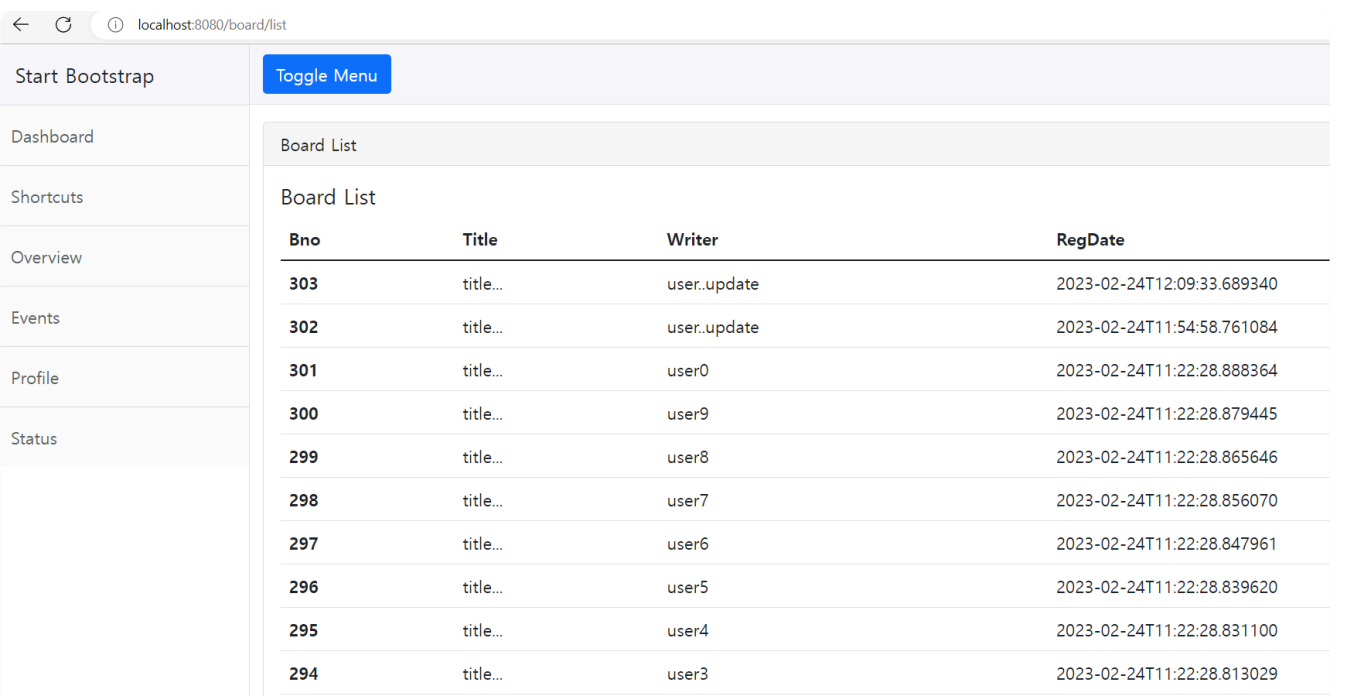 ✓ BoardController에는 list() 기능을 작성해 두었으므로 이를 활용해서 레이아웃까지 적용된 화면을 구성