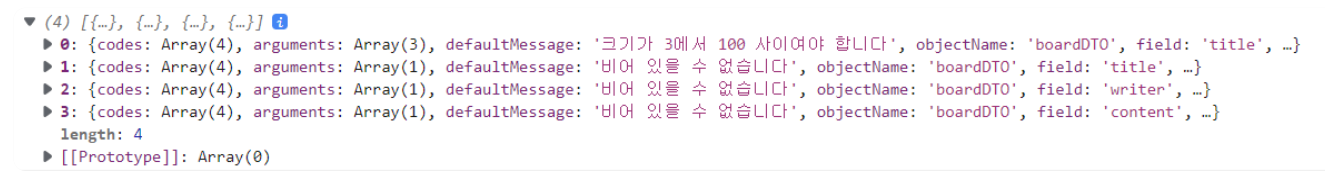 💡 콘솔창에는 배열로 만들어진 에러 메시지를 출력