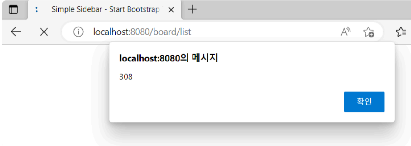✓ 변경된 코드가 적용되면 등록 후에는 모달창이 보이게 되고, 직접 '/borad/list'로 접근할 때는 모달창이 보이지 않게 됨