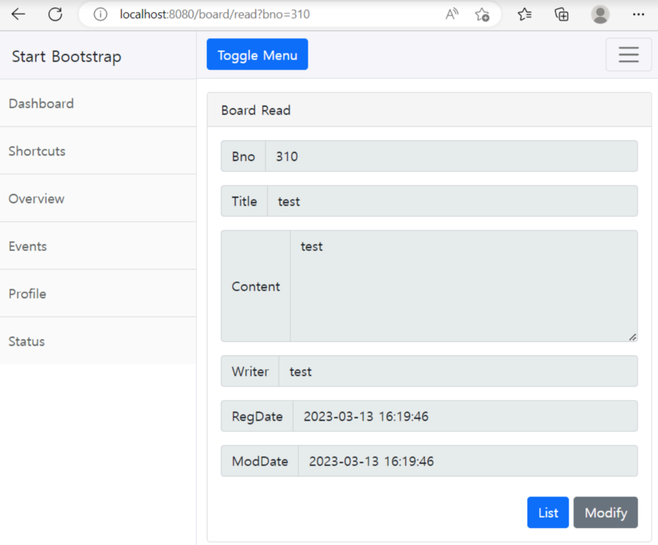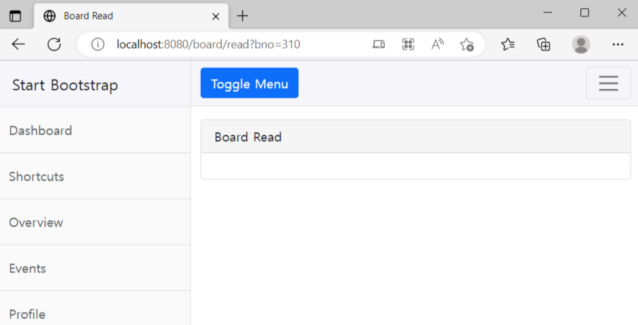 브라우저에서 /board/read?bno=310 같이 존재하는 번호로 조회