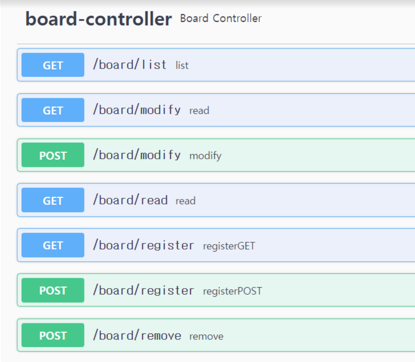 ✓ 화면의 board-controller를 선택하면 다음과 같이 메서드를 선택할 수 있는 화면이 나옴