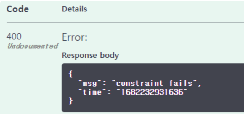 ✓ 추가한 handlerFKException()는 DataIntegrityViolationException이 발생하면 "constraint fails" 메시지를 클라이언트로 전송