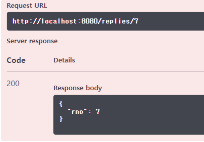 ✓ 정상적인 rno 값이 전달되면 ReplyDTO가 JSON으로 처리