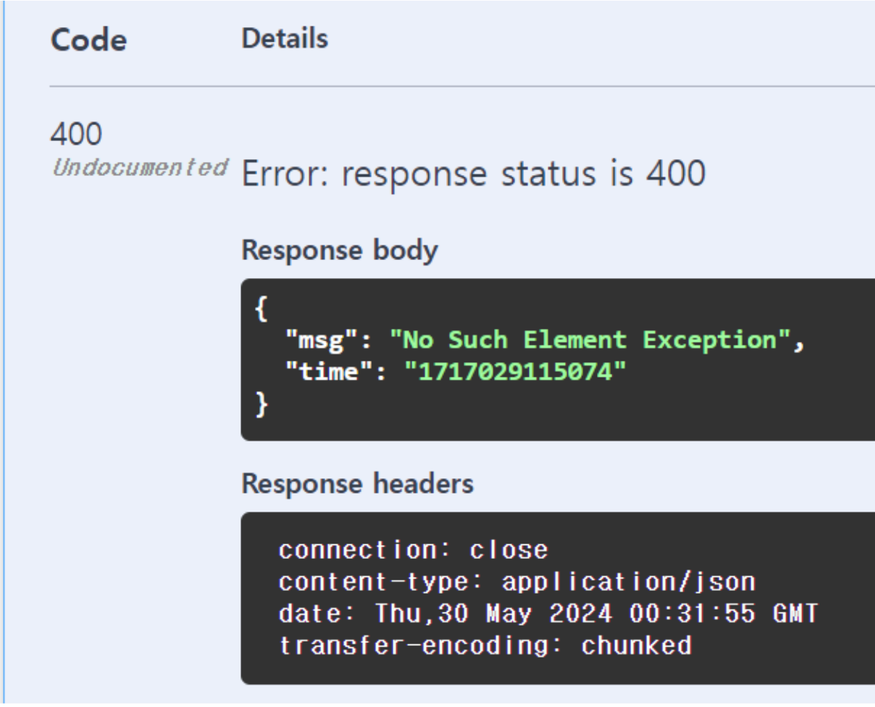 public ResponseEntity<Map<String, String>> handleNoSuchElementException(Exception ex) {