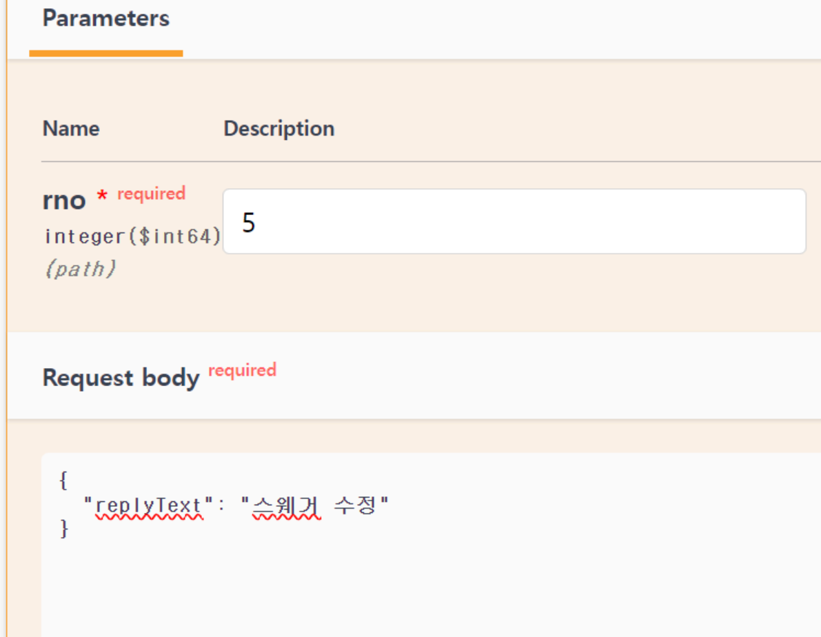@Operation(summary = "Modify Reply", description = "PUT 방식으로 특정 댓글 수정")