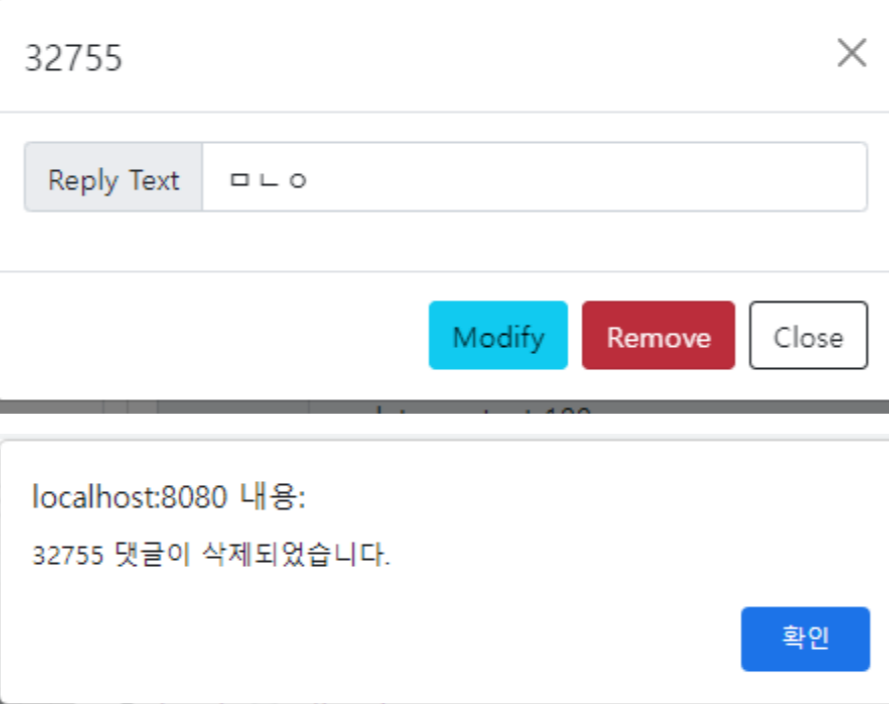 read.html에는 모달 창의 Remove 버튼을 눌러서 댓글을 삭제