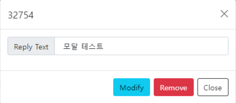 댓글 조회는 등록과 유사하게 모달창을 이용해서 수정이나 삭제가 가능한 버튼들을 보여주는 형태로 구성