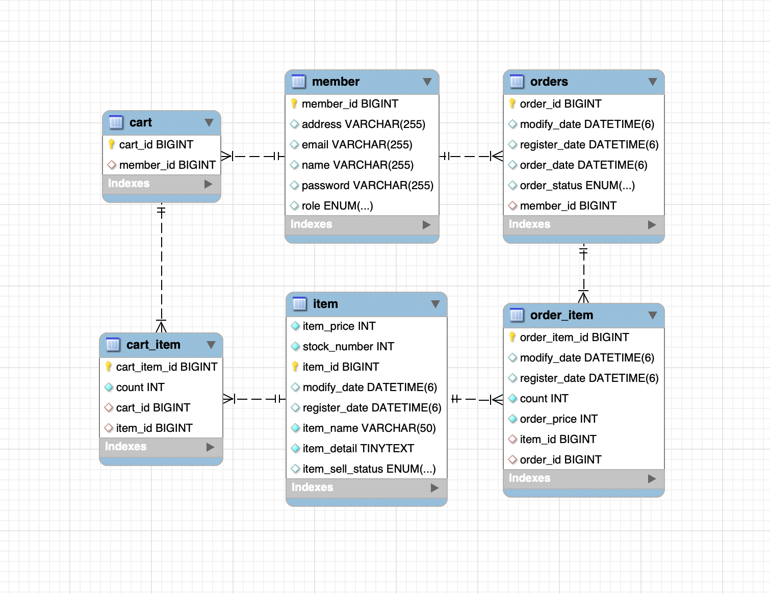 - 장바구니에는 여러 개의 상품을 담을 수 있고, 같은 상품을 여러 개 주문 할 수도 있음!