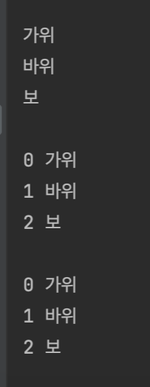 for item in ['가위', '바위', '보']: