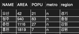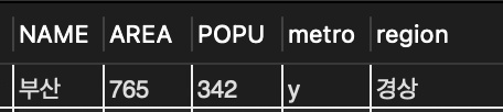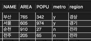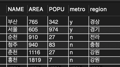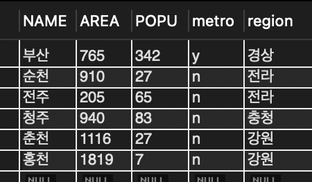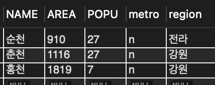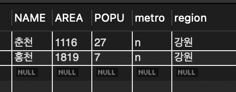 📌 반면 광역시 여부나 지역은 NOT NULL로 선언 되어 있어 값이 없으면 레코드를 삽입할 수 없음.