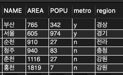 WHERE name = '서울'