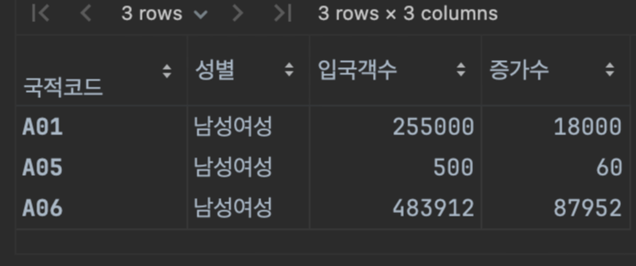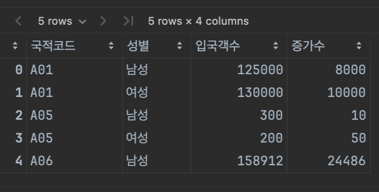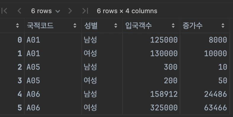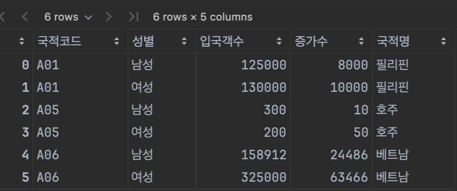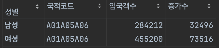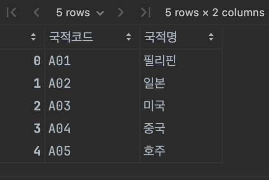 # 국적코드를 그룹별로 합친다. (숫자 뿐만 아니라 문자열도 합침)