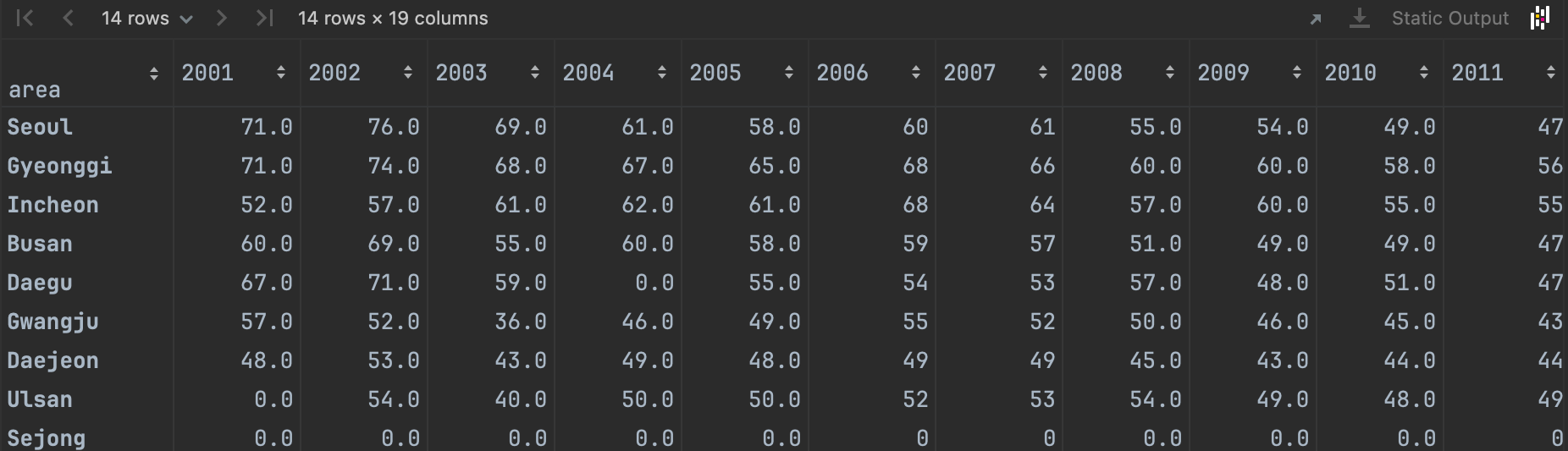 data = pd.read_excel('../input/fine_dust.xlsx', index_col='area')