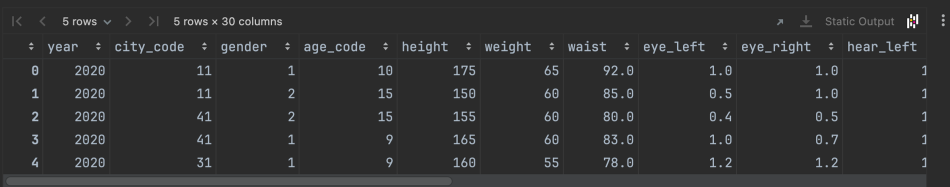 📌 공공데이터포털에서 다운로드한 2020년 건강검진 일부 데이터 health_screenings_2020.xlsx를 이용하여 산점도 그래프를 표현