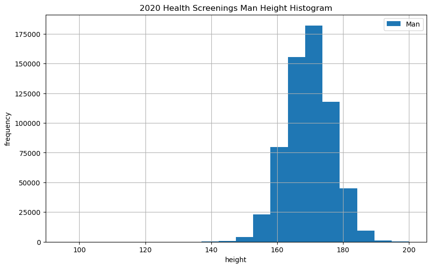 plt.title('2020 Health Screenings Man Height Histogram')