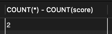 📍 name이나 depart는 NULL이 없어 전체 직원수와 같지만, score 필드는 NULL 값이 있음.