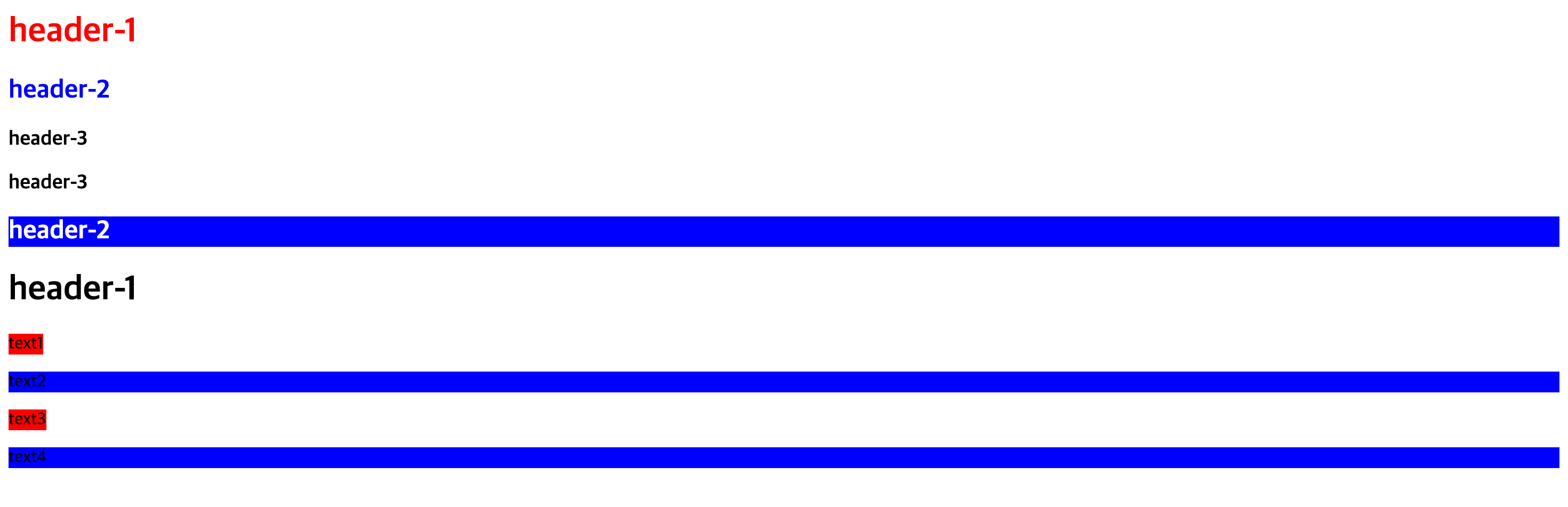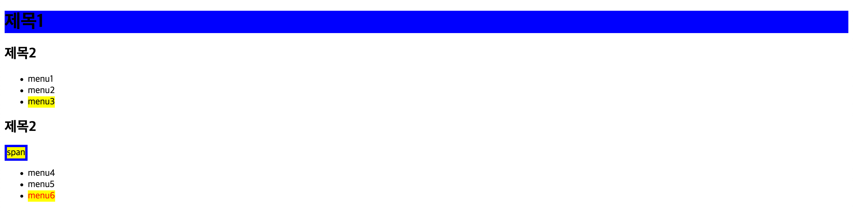 h1:first-of-type { /* h1 태그 중에서 첫 번째 h1 태그의 글자 색상 지정 */