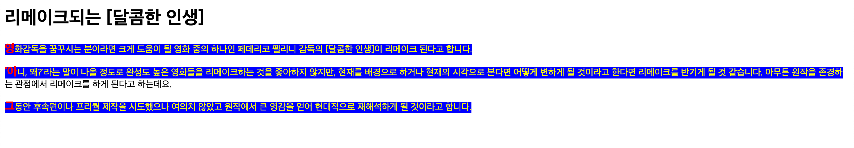 <h1>리메이크되는 [달콤한 인생] </h1>