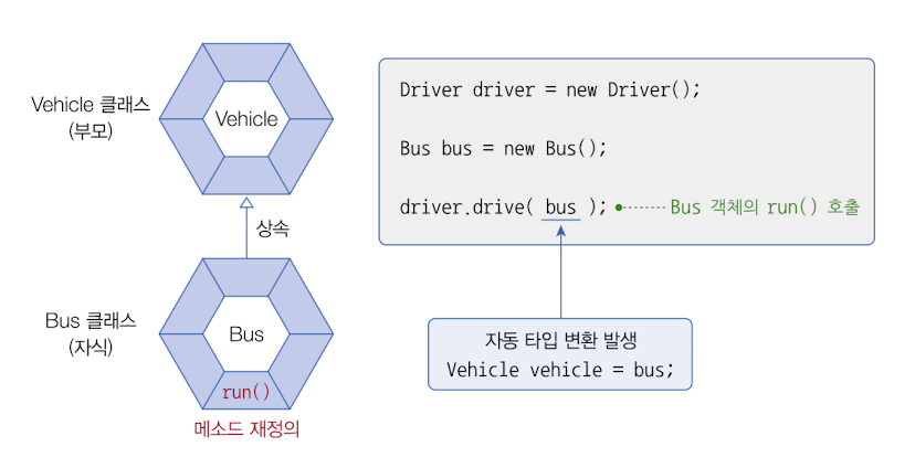 ☑️ 어떤 자식 객체가 제공하느냐에 따라 drive() 실행 결과는 달라진다. 이것이 '매개변수의 다형성'