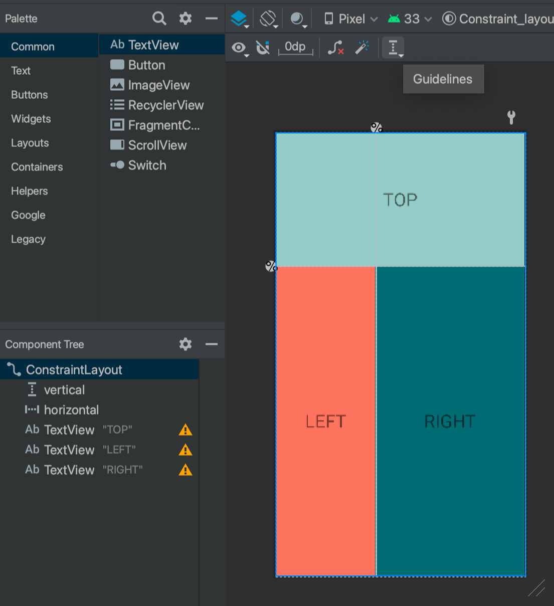 - Ctrl 키를 누른 상태에서 세 텍스트뷰를 모두 클릭하여 선택