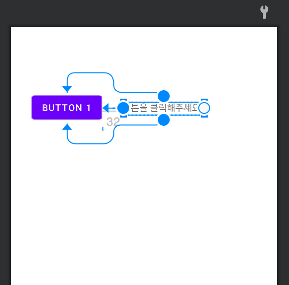 는 밀리초를 나타내는 텍스트 뷰를 위치 - 먼저 초 텍스트뷰의 위쪽을 레이아웃의 위쪽에 초 텍스트 아래쪽을 [초기화] 버튼의 상단에 드래그 ▶️ 그럼 텍스트뷰가 상하 제약의 중간 지점에 놓임