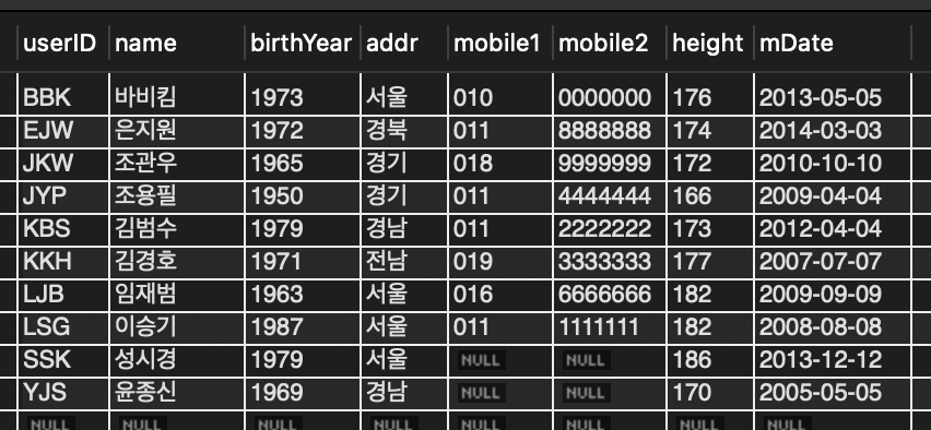 -- root 계정의 데이터베이스 중 'mysql' 이라는 데이터베이스 선택하기