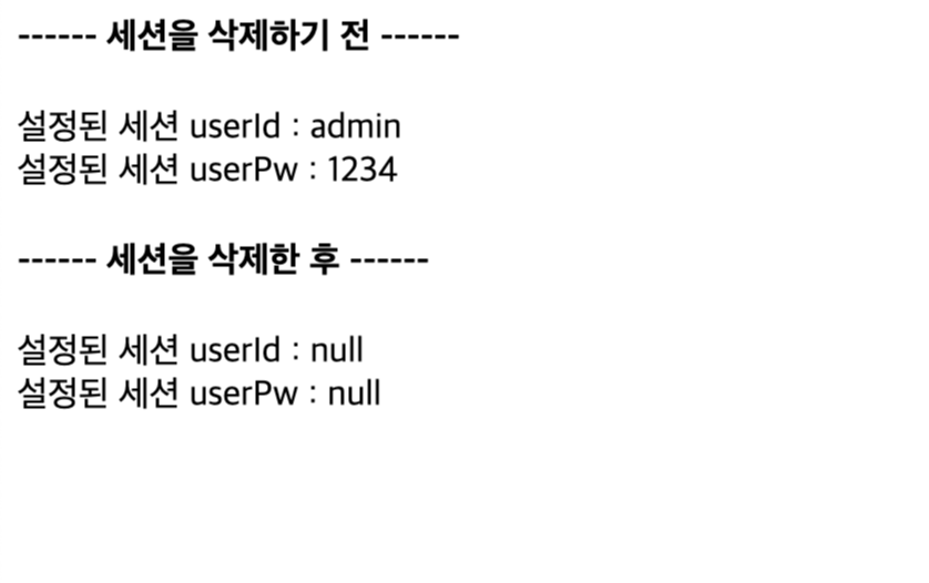 - 세션에 저장된 세션 속성 이름 userID를 삭제하도록 session 내장 객체의 removeAttribute() 메서드를 작성