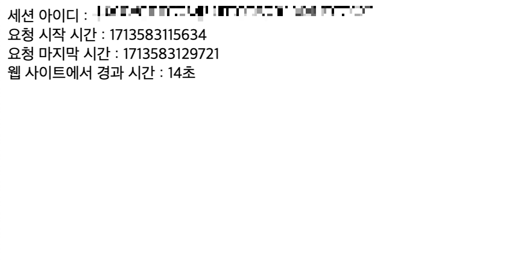 📍 세션 아이디와 웹 사이트에서 유지한 시간 출력