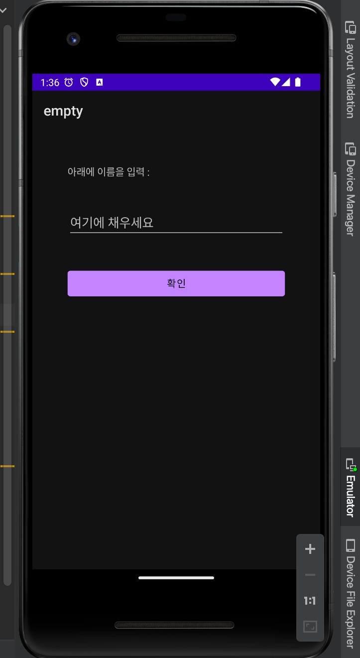 ✓ getText() 메서드는 에디트텍스트에 입력한 값을 반환. 이를 문자열로 바꾸기 위해 toString()을 사용