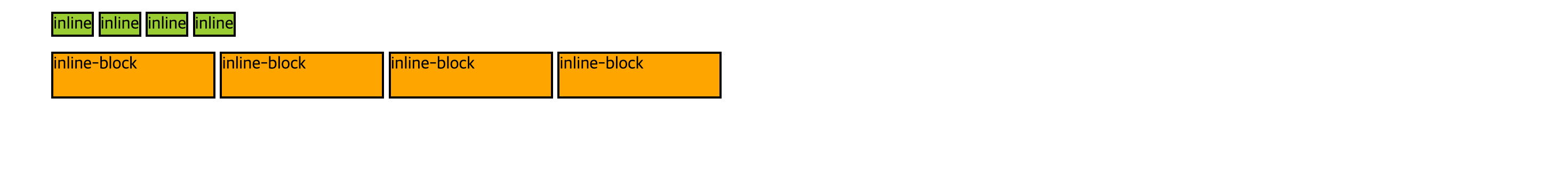 - inline-block을 사용하면 해당 요소들을 가로로 배치할 수 있고 각 요소의 넓이와 높이 등 정확한 수치를 지정할 수 있음